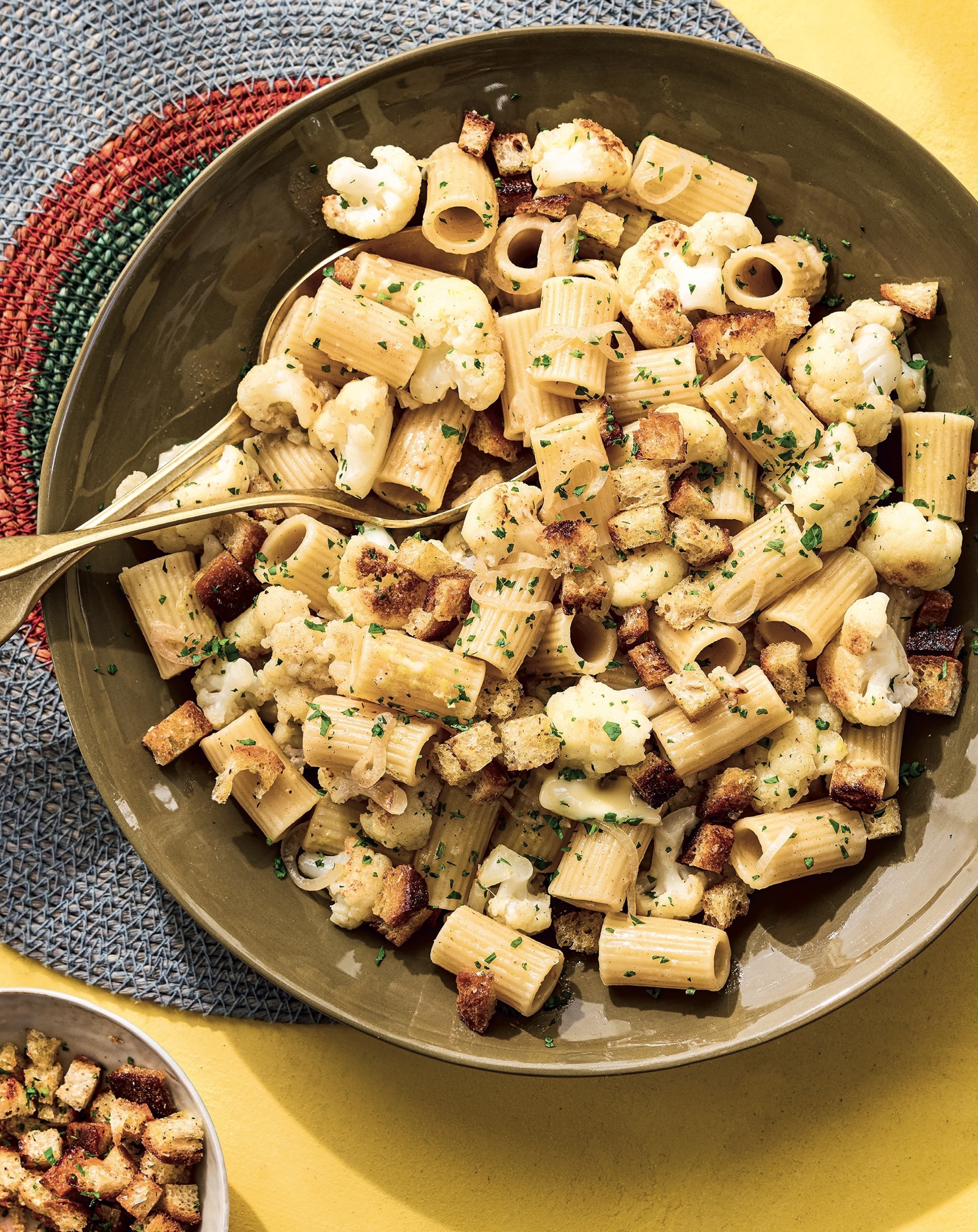 "Yes, this pasta is delicious by itself, but the super crunchy, garlicky chunks of bread lift it to another level," Meehan writes in "A Little Bit Extra," alongside this recipe. "This dish works so well because of the balance of its ingredients; nutty brown butter and warm cauliflower play well together, while Pecorino’s bite and a little zip of lemon ties everything together for your secret-weapon cozy weeknight dinner. Pair with some simple grilled chicken for a more substantial supper, or if you’re feeding a larger group."